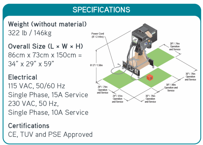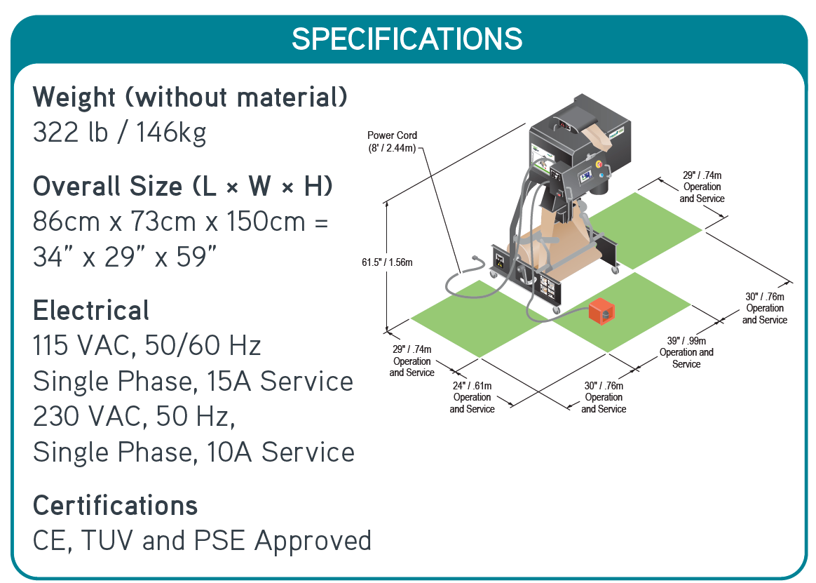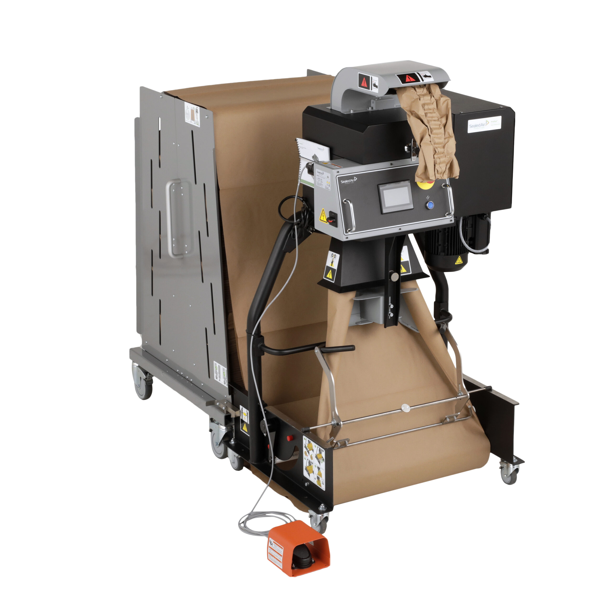 - At half the weight and footprint of traditional paper packaging systems, the portable system is easy to position anywhere.